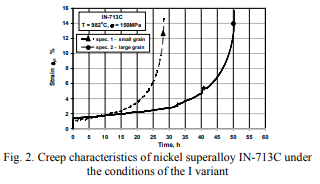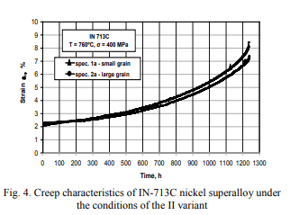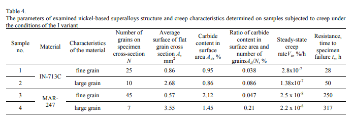 對超等錳鋼鋼,IN-713C的不減性將首先衡量于大晶體大小大小的外形長寬高,對必備條件粗晶體大小大小的布置圖的檢樣,其不減性將做到t = 50分鐘,而對必備條件粉粹晶體大小大小的檢樣,其比熱容做到28分鐘(t = 50分鐘)和看上去熱塑性樹脂(表4)。一致,在錳鋼鋼MAR-247的地溫熱變形中,大晶體大小大小的外形長寬高從基底上作用檢樣的分裂主義情況。必備條件粗粒的布置圖的檢樣的不減性比粉粹的雜糧檢樣高20%上面的。