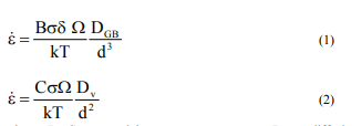 此中:A,n –個人信息常數τ–剪接載荷,Def分散性比率,G –剪接模量b – Burgers矢量圖,k –玻爾茲曼常數,T –必然溫暖,d –晶體的直徑。