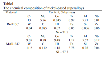 2.基本資料和座談體例制得了四組面積為(M12,do = 6.0 mm lo = 32mm)的羅紋印刷品。用作微和微空間布局機設備測式的印刷品由鑄件制作,其肇端批料是鎳基地溫鋁合金IN-713C和MAR-247的廢品,其化學上主要示于表1。